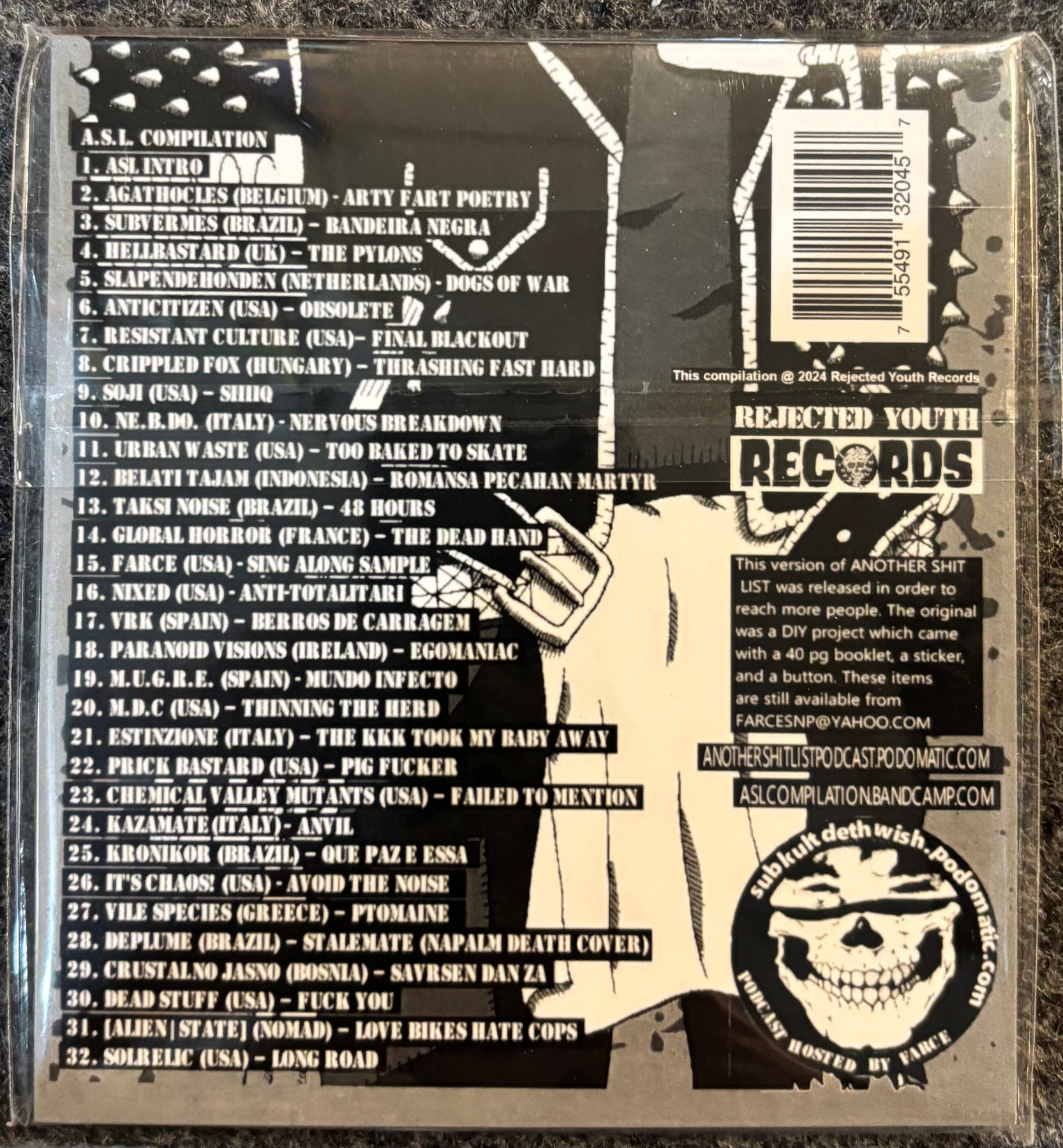The Digipack CD version of Another Shit List compilation put out in collaboration with Rejected Youth Records. CD only.