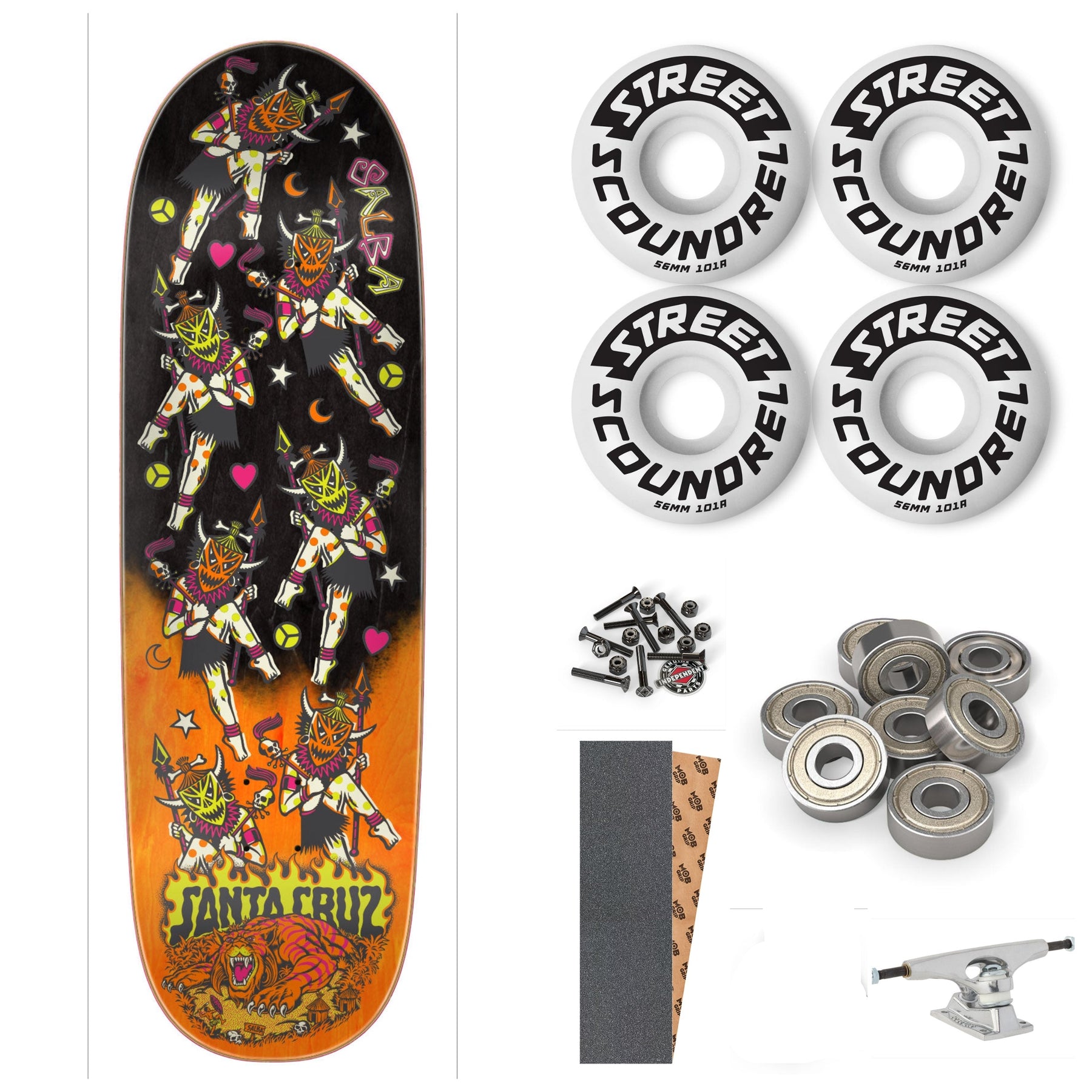 Santa Cruz Skateboards Steve Alba Pro Shaped deck featuring spot matte graphics on hand faded, black to orange stained veneer.