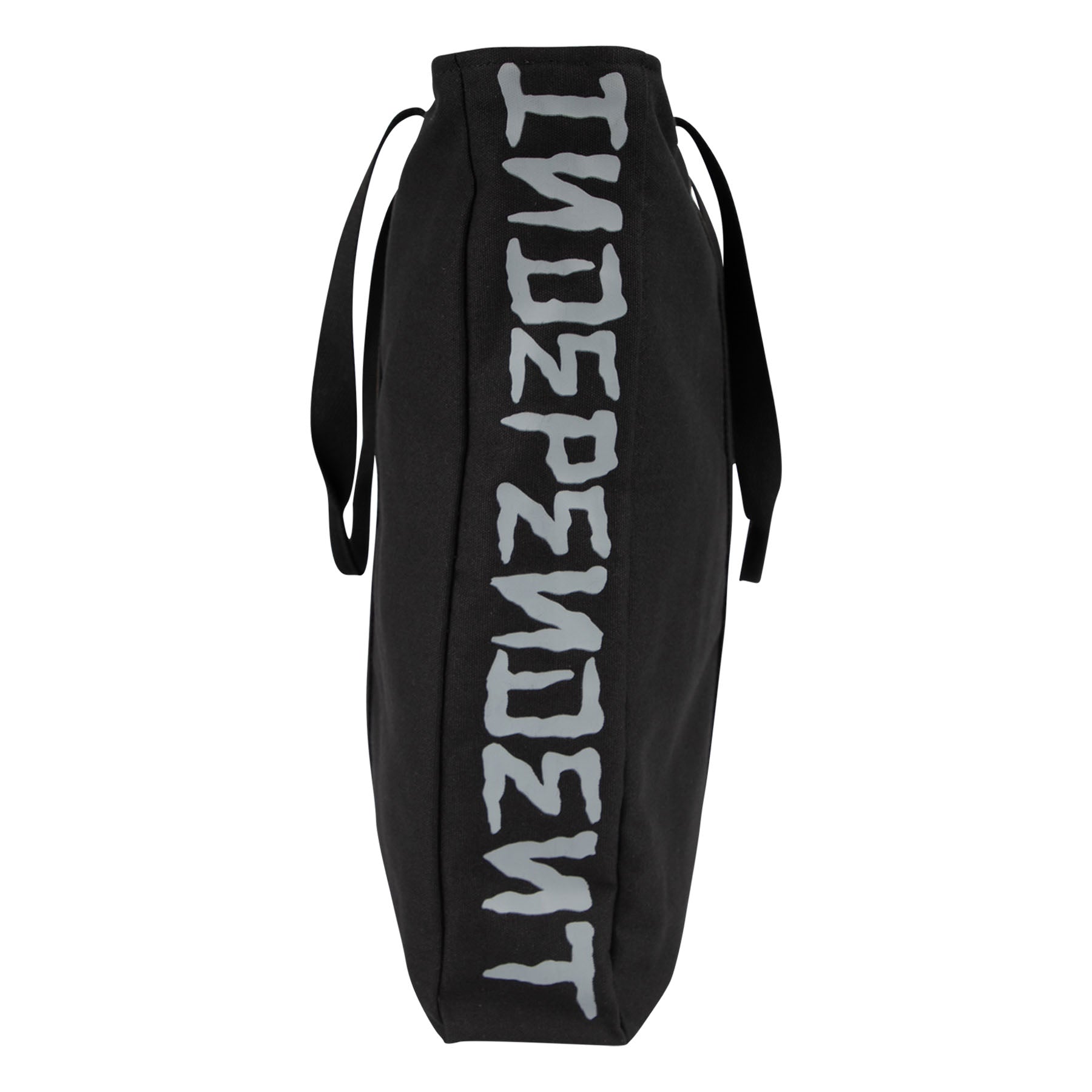 The Independent Dressen Utility tote bag features side print, front embroidery, small flag label on back, and small custom printed interior mesh pocket. Artwork by Eric Dressen.