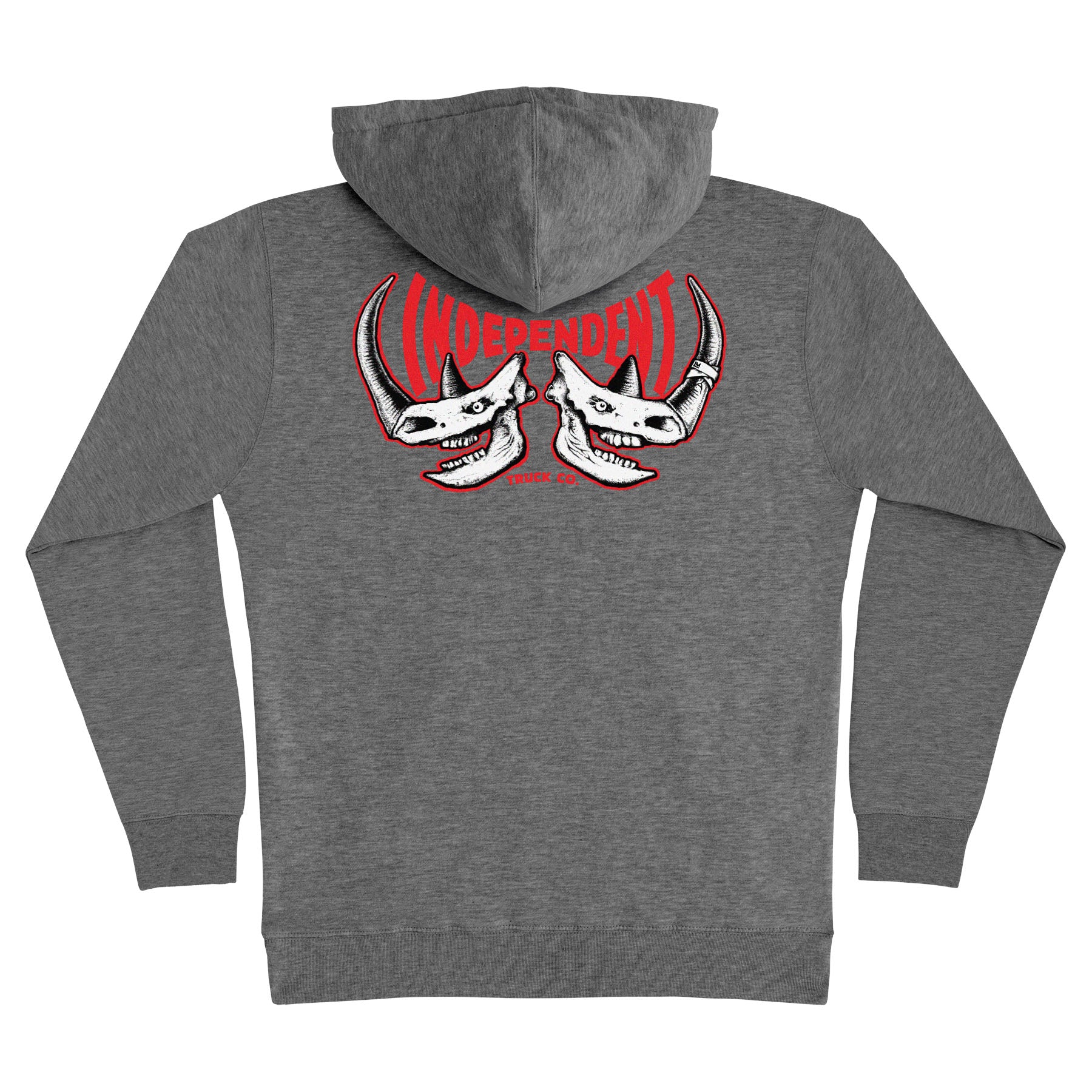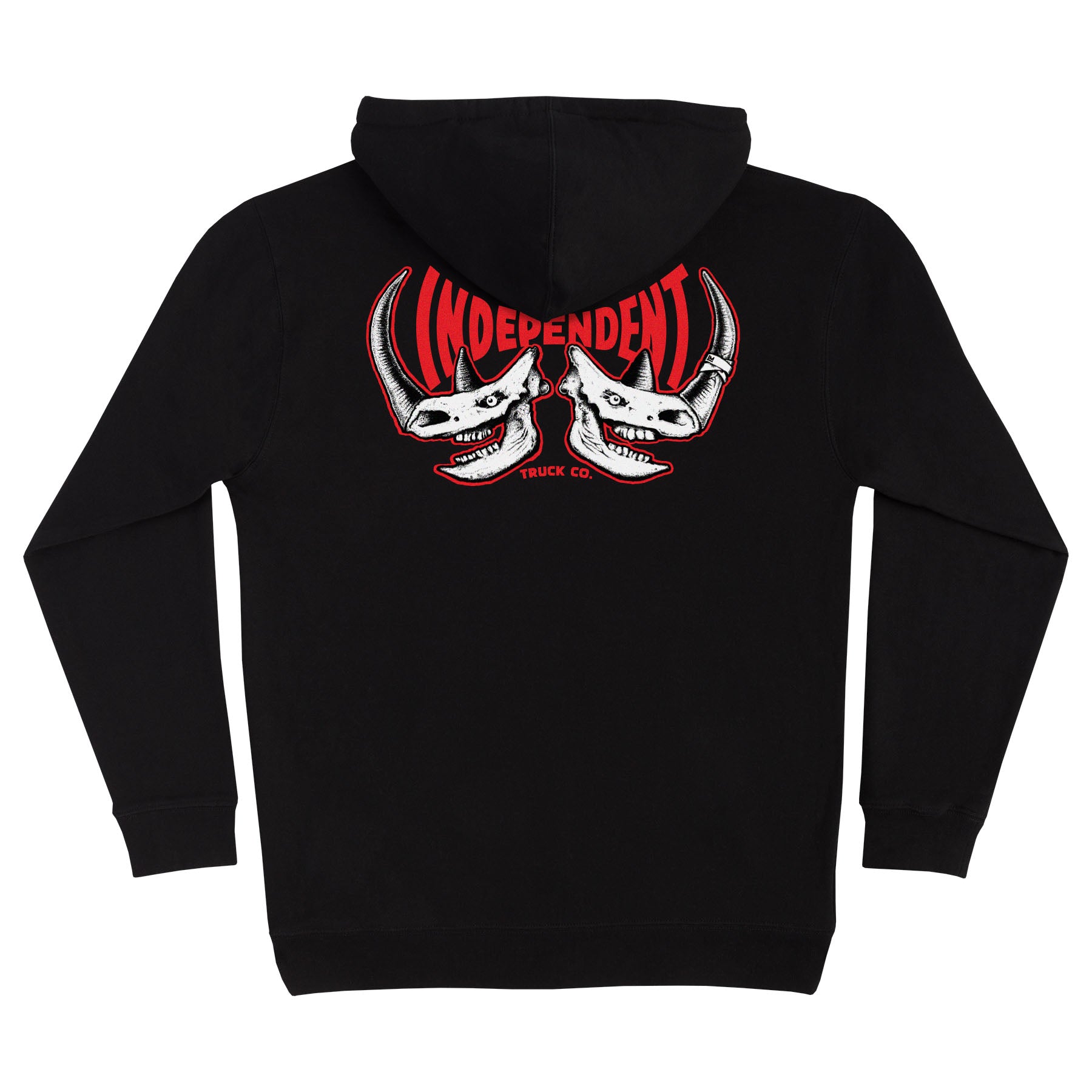 The Independent Rhino Span men's regular fit heavyweight fleece, pullover hooded sweatshirt features small front and large back Independent Rhino Span artwork printed in soft hand ink. Artwork by Lance Mountain. Big shout out to Rhino - skateboarding photgrapher and industry legend.