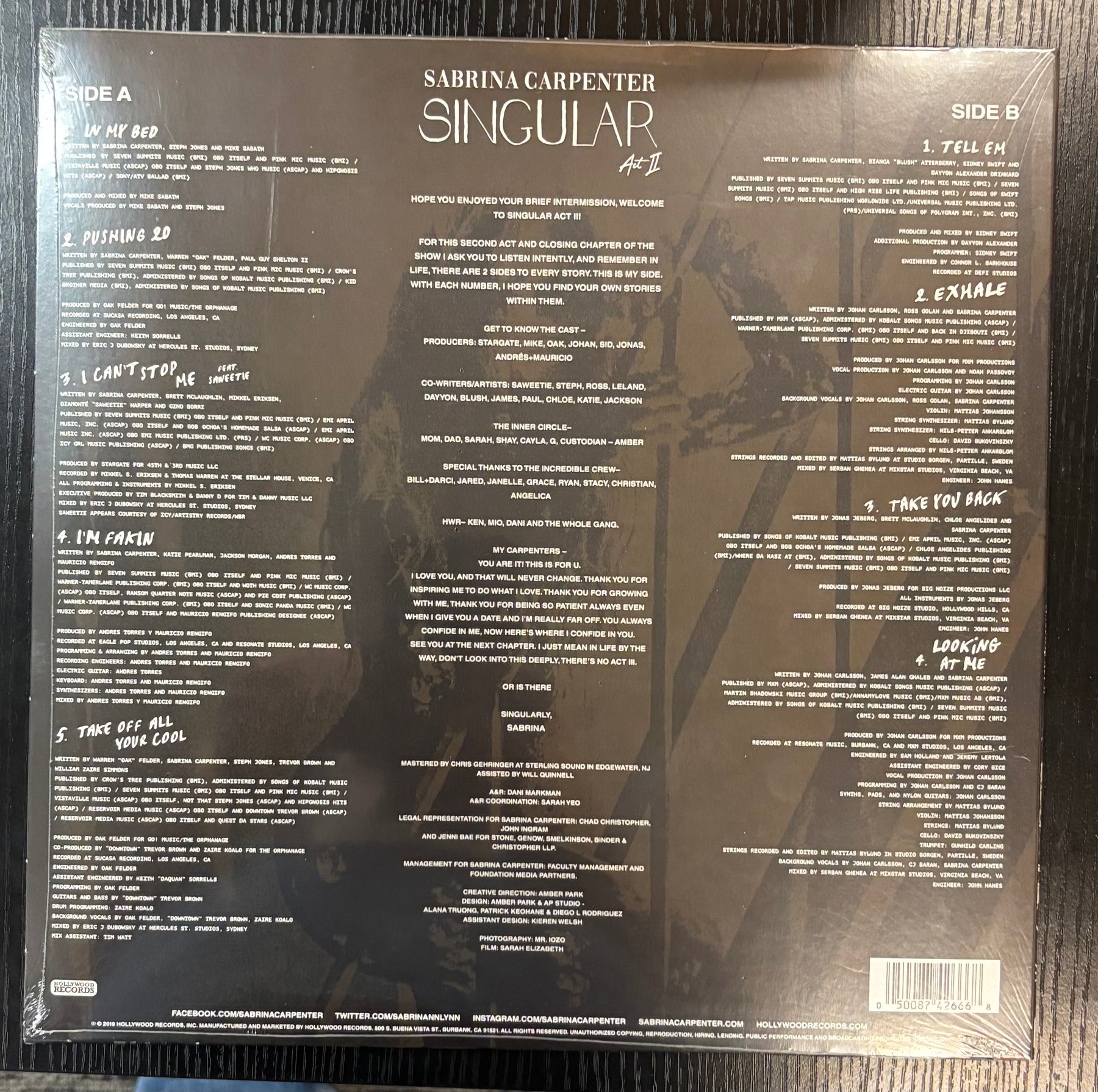 Sabrina Carpenter's fourth studio album is considered the second half of a two-piece project. Released in 2019, Singular Act II features eight songs including "I Can't Stop Me (featuring Saweetie)" and "Looking At Me." Now available on vinyl.