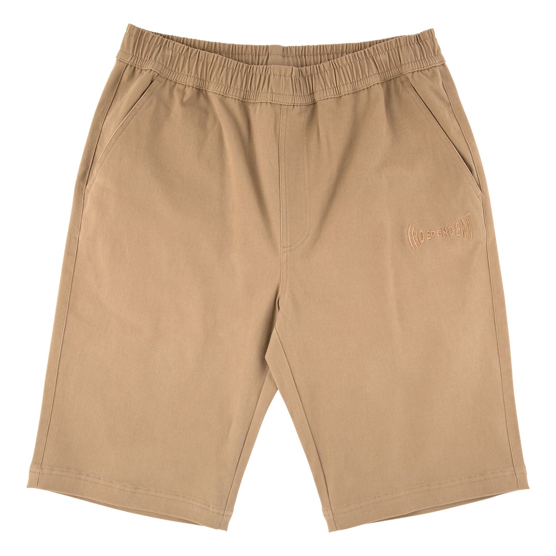 Ride the best in the latest apparel and accessories from Independent Trucks. The new Independent Span baggy fit long inseam short features flat drawcord at interior of elasticated waistband, slash pockets, Independent Span logo embroidery at front leg, and woven label at back welt pocket. Black colorway is stretch twill, Military Green is ripstop. Independent Trucks Built to Grind.