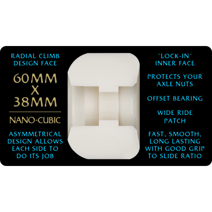 The Nano Cubic's offset design allows it to have the perfect shape for both inner and outer edges to skate a wider range of obstacles. Nano Cubics are smaller, lighter, and offset, so their large outer edge rolls up curbs, walls, and over cracks, and it covers your axle and nuts. The inner edge locks onto rails but releases when you need to.