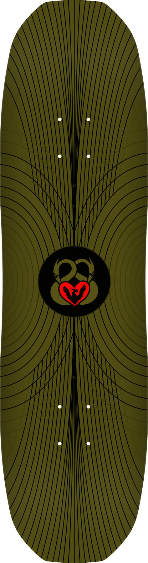While the Vajra shape was a challenge to develop, this one came easily to Andy. Reminiscent of the original Heron shape but smaller and symmetrical, it measures 8.25" at the waist, just under 8.5" at the widest, and has a 14.25" wheelbase. The square edge and slightly curved nose and tail deliver solid, stable pop, while the K26 concave and inner cuts create a front-foot pocket that makes Tre Flips and Varial Heelflips easier to flick. With its streamlined shape, pop, and responsive feel, the Hydrant shape is solid gold.