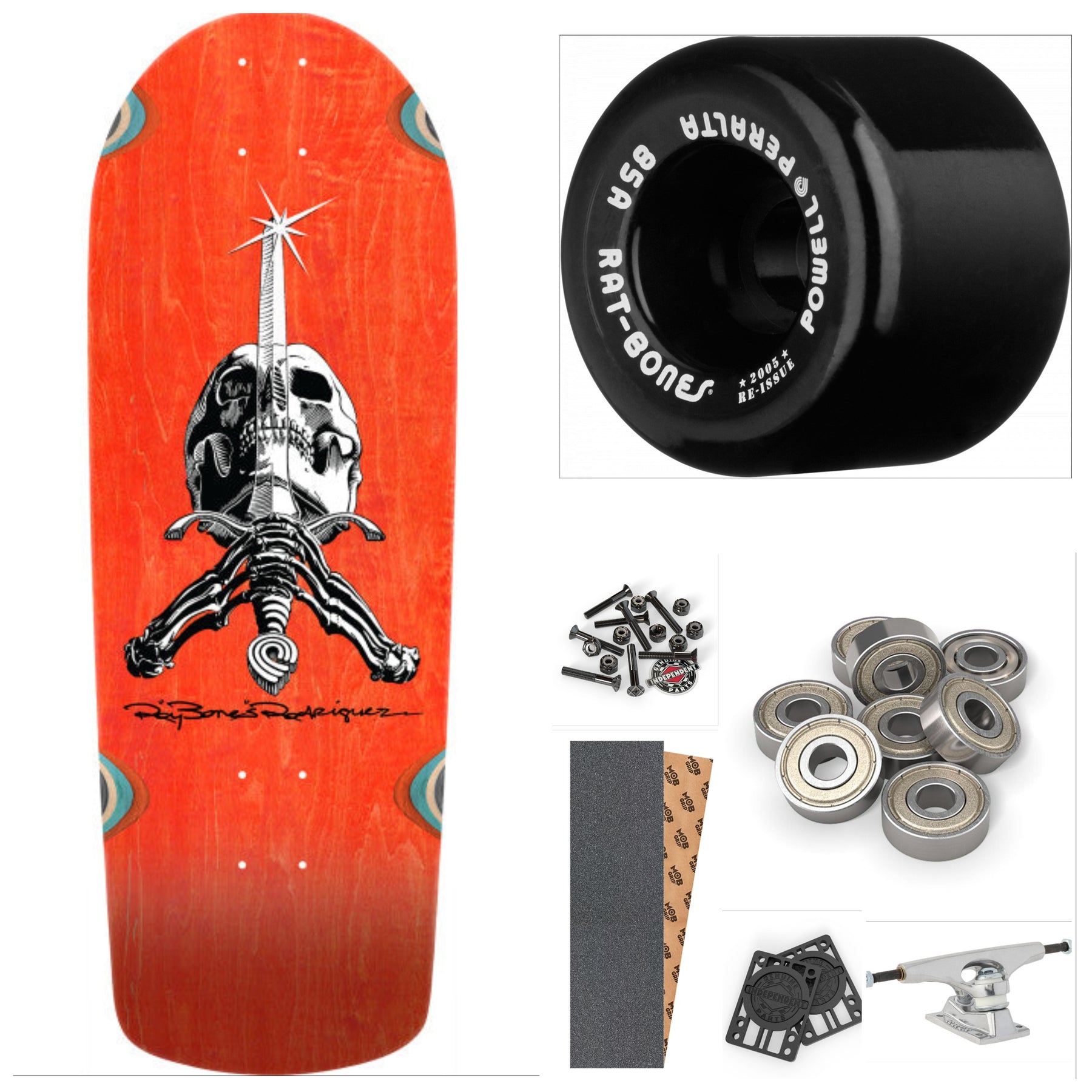 Powell Peralta Rodriguez Skull and Sword Snub Orange Stain 10" Complete Skateboard