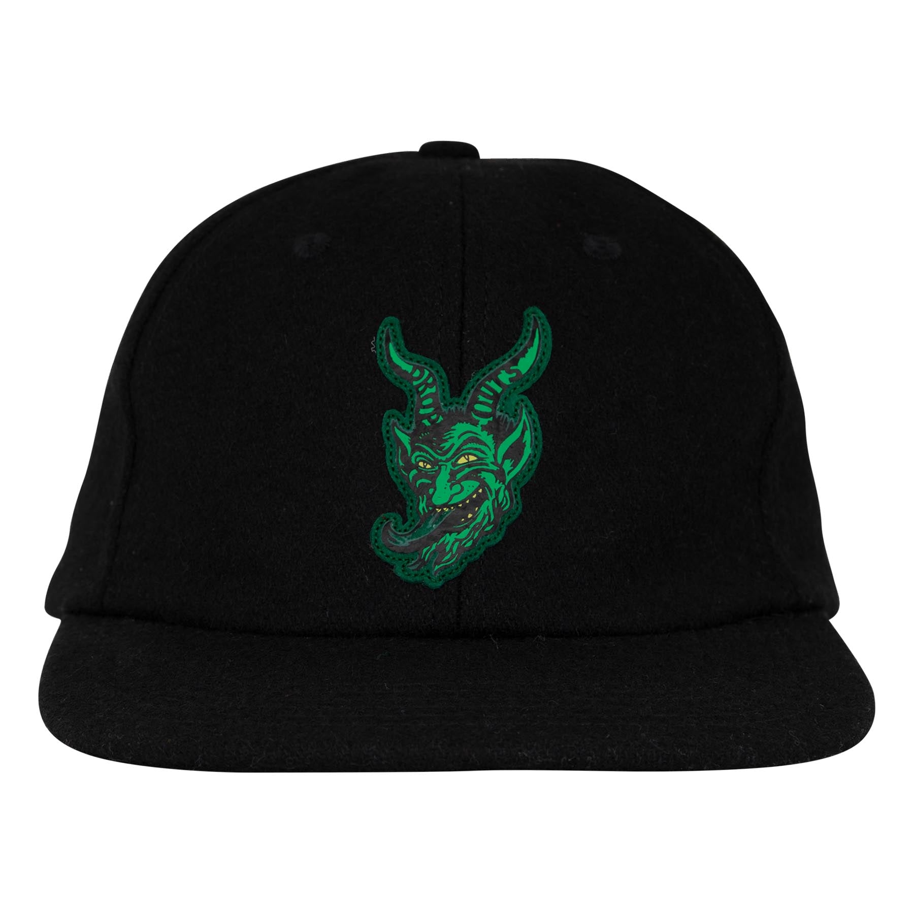 The Creature Drop Out unisex, low profile fit, 6 panel, unstructured snapback melton wool hat features printed felt patch at front, direct embroidery at side panel, loop label at rear adjuster and custom interior taping.