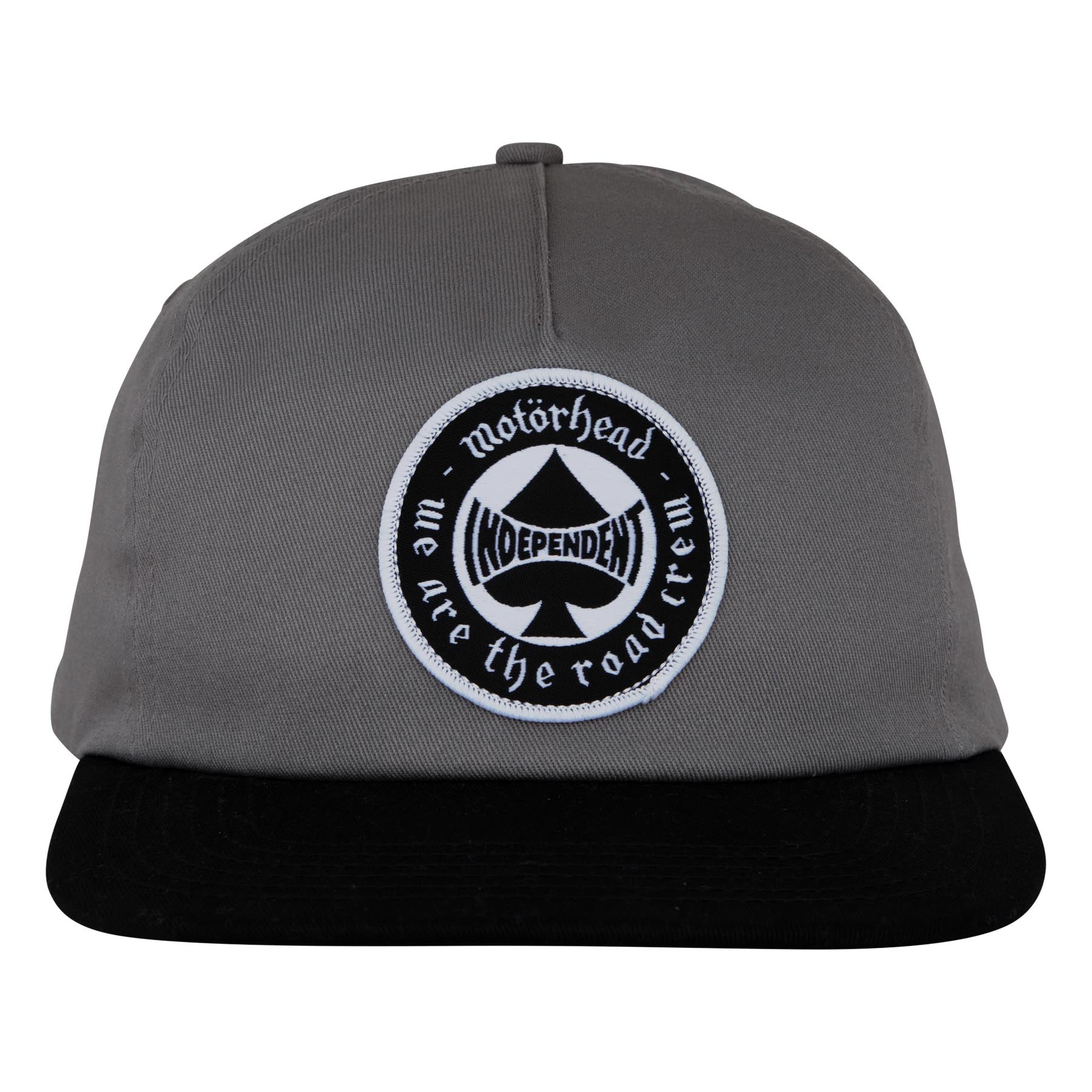 The Independent Motörhead Spade unisex low-profile fit, unstructured twill, 5 panel snapback hat features contrast underbill, embroidery patch at front, mesh stay, loop label at rear adjuster and custom interior taping.