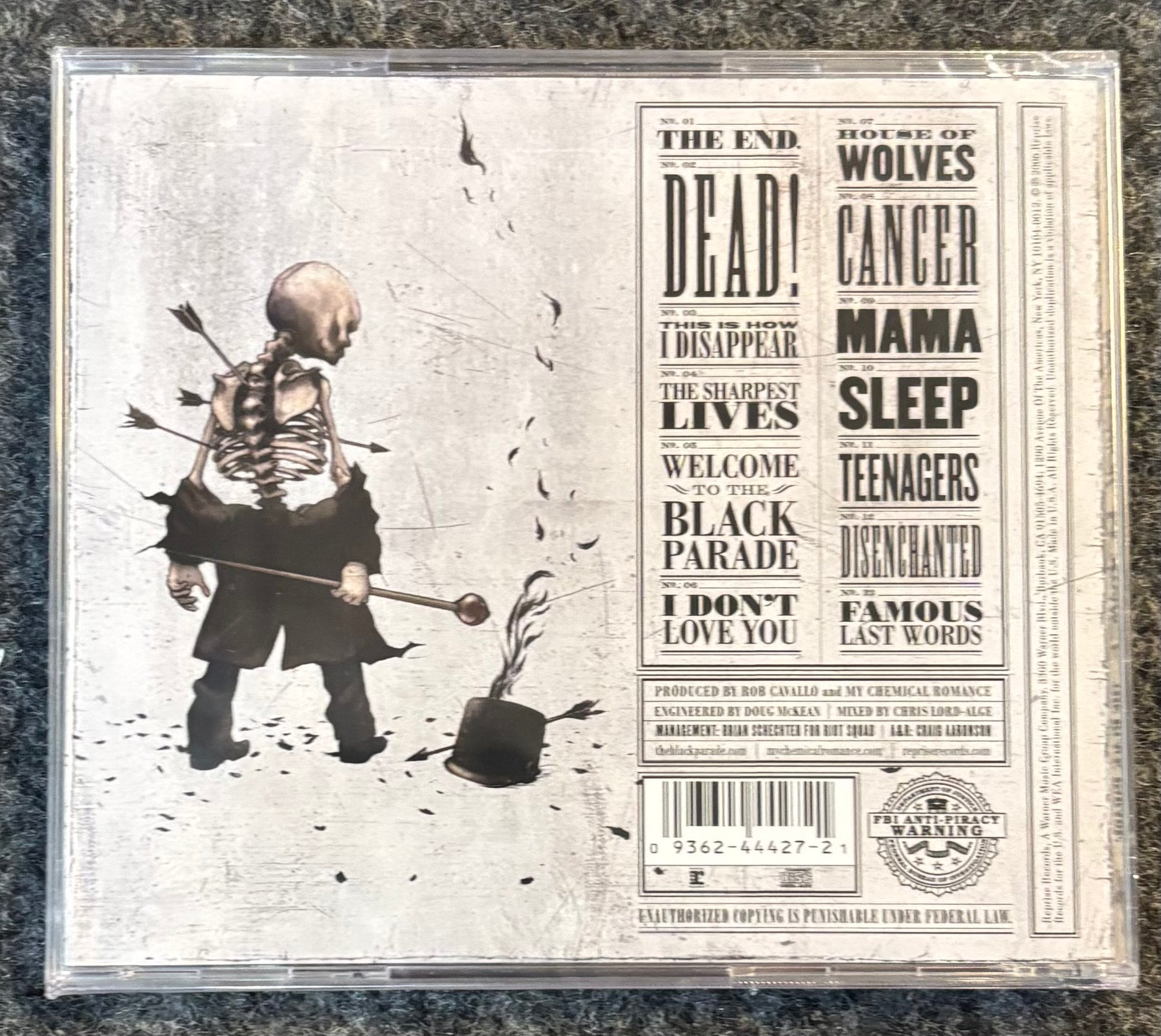 My Chemical Romance release their follow-up to their 2004 platinum major label debut with THE BLACK PARADE. THE BLACK PARADE is a celebration of love and death and darkness, it is produced by Rob Cavallo and features guest appearances by Liza Minelli, Jamie Muhoberac and Cheech Iero.