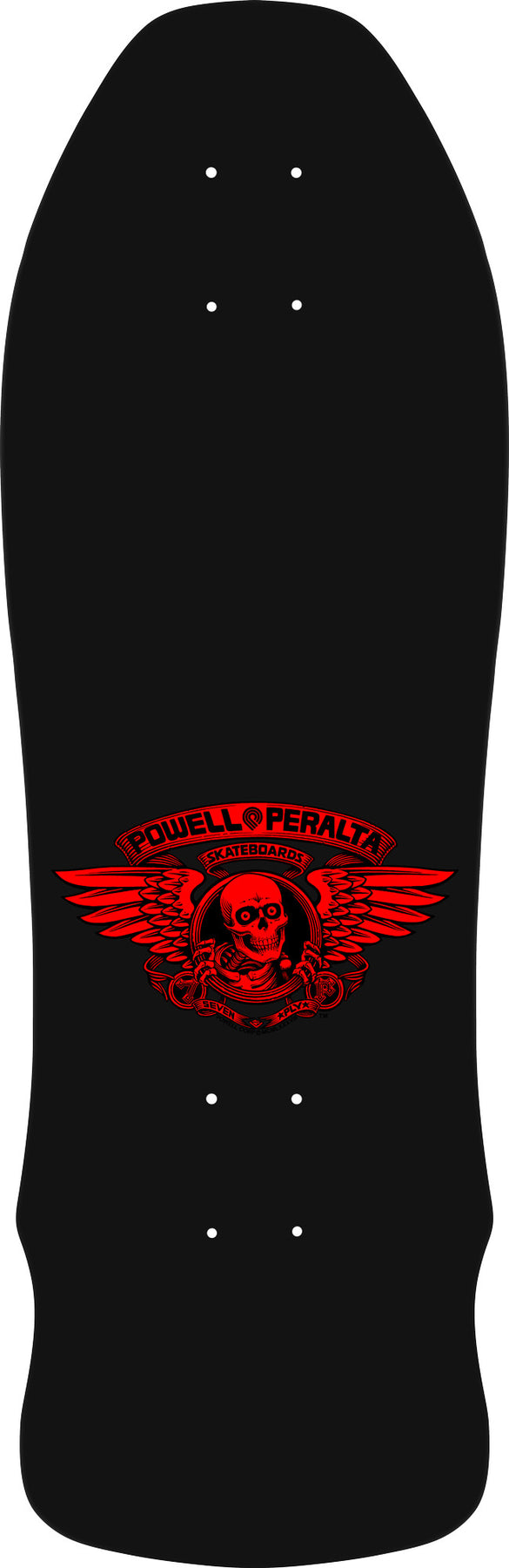 Powell-Peralta re-issue decks are close reproductions of their 1980’s counterparts, featuring the original top and bottom graphics, shape and concave. Made with our partner in Mexico. Materials include U.S. hard rock maple and glue that meets our specifications, warranted against delamination for their useful life. Shape and graphics created in Santa Barbara, CA.